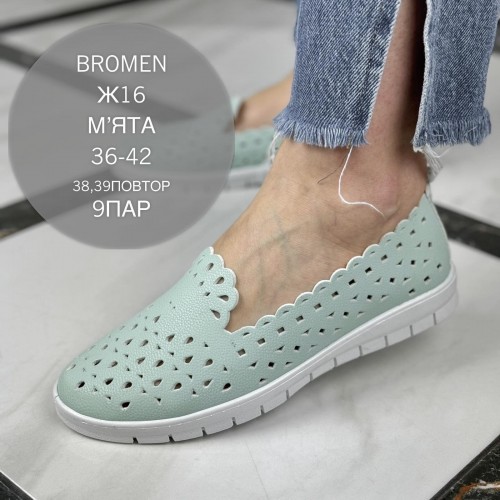 Теги: Мокасини жіночі, Ж-16 м‘ята Bromen, МОКАСИНИ ЖІНОЧІ